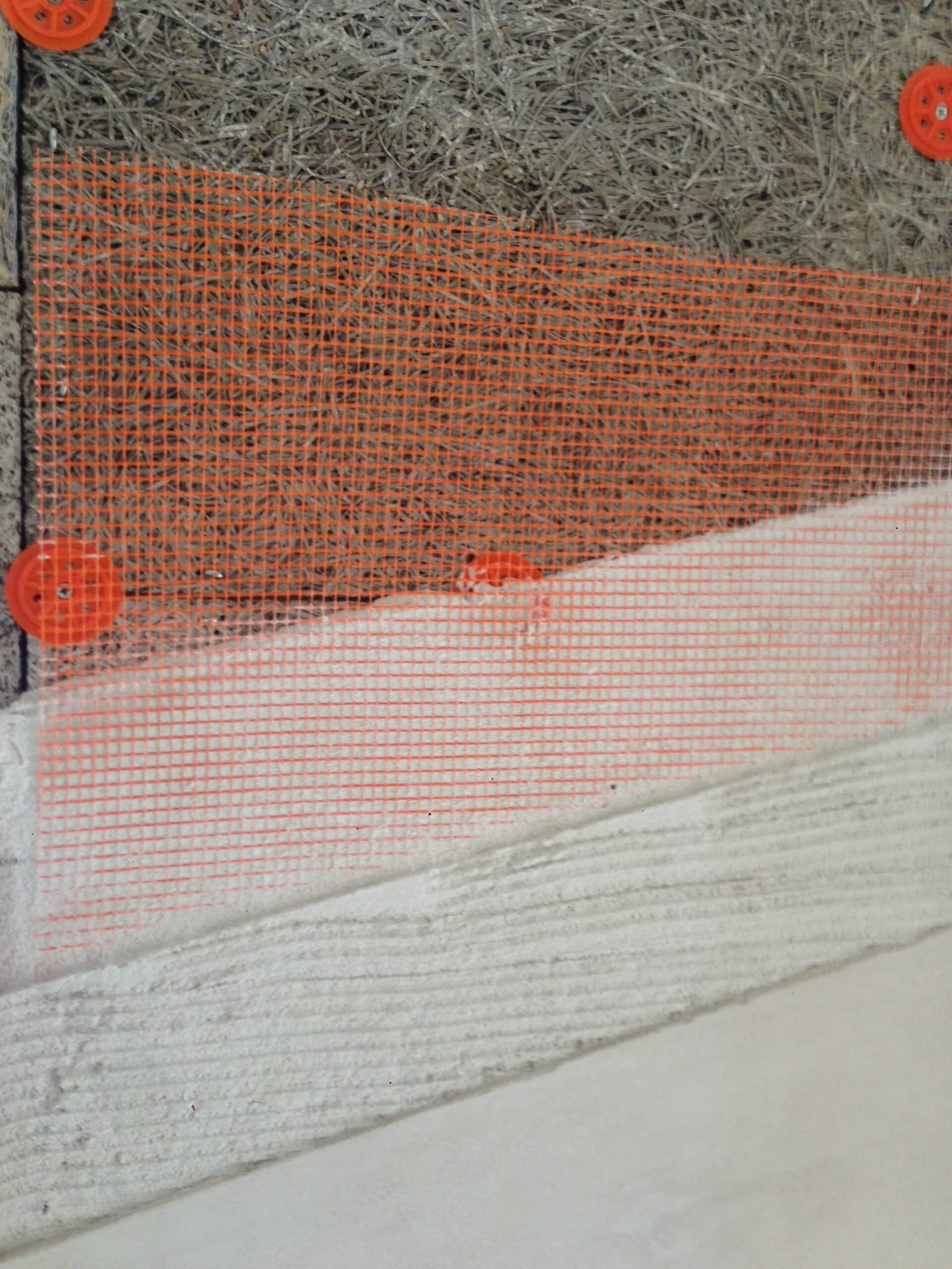 The outside was plastered with three coats of breatheable lime plaster.